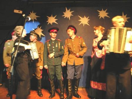 Когда поёт казачий хор Постоянным гостем санатория «Красноярское Загорье» является казачий народный ансамбль «Любо» Ключинской станицы Балахтинского района Красноярского края. Многие из тех, кто отдыхал в санатории не в первый раз, уже были знакомы с этим хором и потому с нетерпением ждали его очередного выступления, намеченного на 30 марта. А по мере приближения начала концерта стало ясно, что послушать русские народные песни в исполнении казачьего ансамбля собрались почти все отдыхающие санатория! АРТИСТЫ приехали задолго до концерта. Переодевались в маленькой гримерке — весело, с шутками-прибаутками, прерываемыми дружным смехом. Ребята в казачьей форме с фуражками набекрень — как и принято у казаков — с достоинством, чинно стояли, прислонившись к стене. Ждали руководителя ансамбля Ивана Дмитриевича Андруковича. Через некоторое время появился и он. В нашем распоряжении оставалось минут десять, чтобы пообщаться с Иваном Дмитриевичем, расспросить о хоре, о том, как он создавался, и кто в нем поёт. И вот что мы узнали от художественного руководителя: — Наибольшой вклад в становление нашего ансамбля внесла Надежда Щёкина — атаманша, как ласково называют её хористы. И вы знаете, это боевое определение удивительно точно ей подходит! Она действительно настоящая казачка, жена атамана Юрия Щёкина, который тоже поет в хоре… Наш творческий путь продолжается уже без малого одиннадцать лет, а поют в коллективе исключительно жители сибирской казачьей станицы Ключи. Сначала это был небольшой самодеятельный ансамбль, в который первыми пришли люди, преисполненные безмерной любви к русской песне, и озабоченные тем, как сохранить её бесценное наследие. Впрочем, сегодня все мы уже уверены в том, что, несмотря ни на что, русская песня не умрёт никогда — настолько велики её размах и душевность. К счастью, в сельской местности любовь к русской песне передается буквально в каждой семье из поколения в поколение, поэтому сейчас в нашем коллективе поют и молодые, и пожилые жители станицы. Самой молодой участнице не исполнилось ещё и десяти лет. По мере того, как к ансамблю «Любо» приходила известность, росла его популярность, организаторы всё чаще и чаще задавались вопросом: сколько же коллективу оставаться самодеятельным? Тем более что рост мастерства определённо был налицо. И когда вопрос о придании ансамблю официального статуса был поставлен перед главой администрации Балахтинского района Н.М. Юртаевым, Николай Мартович и обратился с просьбой возглавить коллектив к своему заместителю И.Д. Андруковичу. На первый взгляд, странное предложение. Но это только на взгляд стороннего человека. Николай Мартович знал, что ещё во время своей работы в органах внутренних дел И.Д. Андрукович (ныне — подполковник в отставке) создал там хоровой коллектив. Поэтому совершенно закономерно, что именно ему было сделано предложение возглавить казачий хор.