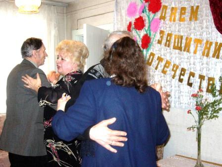 И вот уже полились звуки баяна. Надежда Парамоновна Зайцева играет попурри на песни военных лет. Эти песни знают все. Величественно звучат голоса ветеранов: "До тебя мне дойти нелегко, а до смерти четыре шага". Баяну вторит гитара. Борис Иванович Петров необычайно трогательно под свой аккомпанемент поет о войне, о солдатах, о горе и счастье. А потом звучит вальс - очень красивый, прекрасным голосом - от Энергета Николаевича Карасёва. И всё веселее, веселее! Владимир Николаевич и Надежда Яковлевна Кононовы с неподражаемым задором наигрывают "Русскую". А Лидия Григорьевна Марченко и Вера Ивановна Липатова до того задорно орудуют балалайкой и гармошкой, что многие под частушки пускаются в пляс. Вперемешку льются задушевные песни Любови Григорьевны Меркушевой, Галины Ивановны Сорокиной и Лидии Емельяновны Шахматовой!
