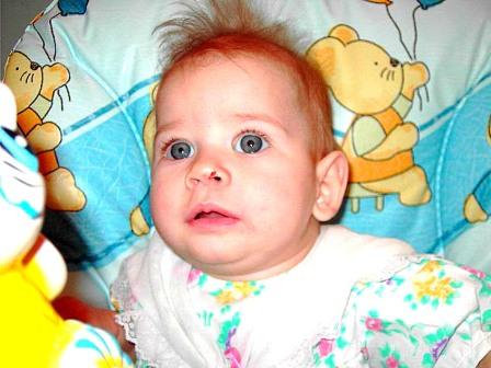 Ласковая и нежная малышка по имени АНАСТАСИЯ – непоседа и настоящая егоза. Она с удовольствием играет в манеже, ей нравятся мягкие игрушки и мячи. Настене 5 месяцев, у нее голубые глазки и русые волосы.
