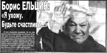 Завершает свой приторно-сладкий, с гипертрофированно-пышными метафорами опус наш мемуарист весьма сомнительным выводом: «Борис Николаевич, уходя с поста, оставил Россию демократической страной с огромным авторитетом, величайшими возможностями и... сознанием людей огромной страны, повернутым к рынку».