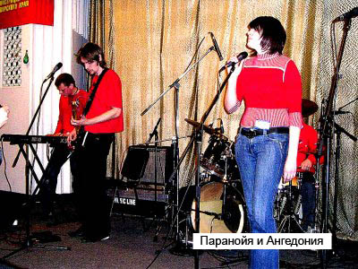 Итак, я увидел и услышал мощные децибелы группы «Энтропия» — одной из самых сильных, на мой взгляд, панк-групп Красноярска. Тексты жизненные, в чём-то даже философские, драйв в меру жёсткий. Вообще, команда имеет своё лицо, «Энтропия» вполне узнаваема. «Паранойя и Ангедония» — наверное, самая жёсткая группа, рубящая в стиле панк, как по текстам, так и по звуку. Впрочем, лидер команды Андрей Сковородников уделяет должное внимание в своих песнях и патриотической тематике. Правда, на «Живом звуке» этот компонент не был задействован — всего по две-три песни можно было исполнить одной группе, что, конечно же, крайне мало. Но сколько было самих групп! Действительно, puck not dead!