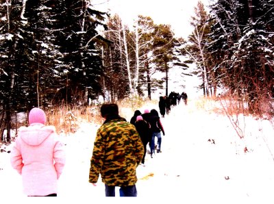 | Юные красноярские туристы из клуба «Каскад» у подножия Западного Саяна (фото Л.Грудиновой). |
