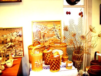 Разглядеть в куске дерева тонкие черты таежной красавицы Синильги или колоритного казака с только что потухшей трубкой – дано не каждому. А вот пенсионер Виталий Алексеевич Пантиков не только разглядел, но сделал их осязаемыми для каждого! Изящны и неповторимы нежные в любовной страсти жар-птицы работы педагога из клуба «Радуга» Татьяны Ремжи. Надо отметить, что Татьяна Викторовна постоянный участник районных выставок. Здесь же в этот раз были представлены её туеса, выполненные из бересты.