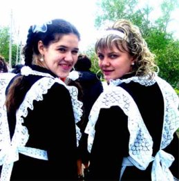 Камеры, фотоаппараты уже ждут, когда хозяин нажмёт заветный «on».… И вот началась торжественно-прощальная линейка. Выпускники одеты с иголочки: по традиции, девушки – в формах, ажурных кружевных фартучках, парни – в костюмах.