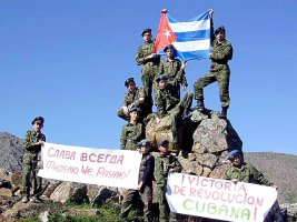 Три часа штурма вершины от подножья долины Боруса. Дыхание прерывистое, но дух захватывает… красота таежной шири! Трепетно расправило свое крыло знамя Республики Куба. Привет тебе, Остров свободы! Живи всегда, революционная Куба! Да здравствует наша дружба!
