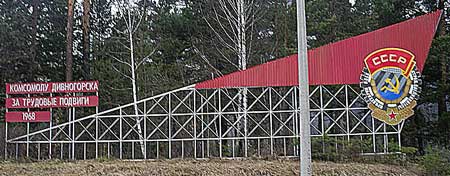 На въезде в город Дивногорск (руководители В.Н. Германович, А.Г. Хохлов):