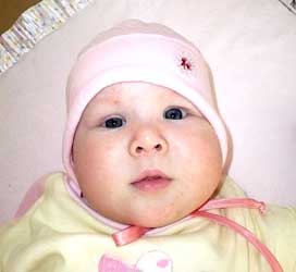 ОЛЯ – доброжелательная, милая, улыбчивая девочка. Старается привлечь внимание взрослых лепетом и искренней улыбкой, уже пытается ходить, но пока, удерживаясь за мебель, подолгу рассматривает себя в зеркале. Малышке 9 месяцев.