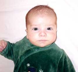 САША – улыбчивый, подвижный 4-месячный малыш. Он любит следить за игрушкой, безошибочно реагирует на источник звука, подолгу рассматривает предметы. Любит пение.